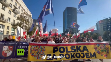 The demonstrators particularly opposed Warsaw’s aid to Kiev and what they called “pro-war propaganda.”