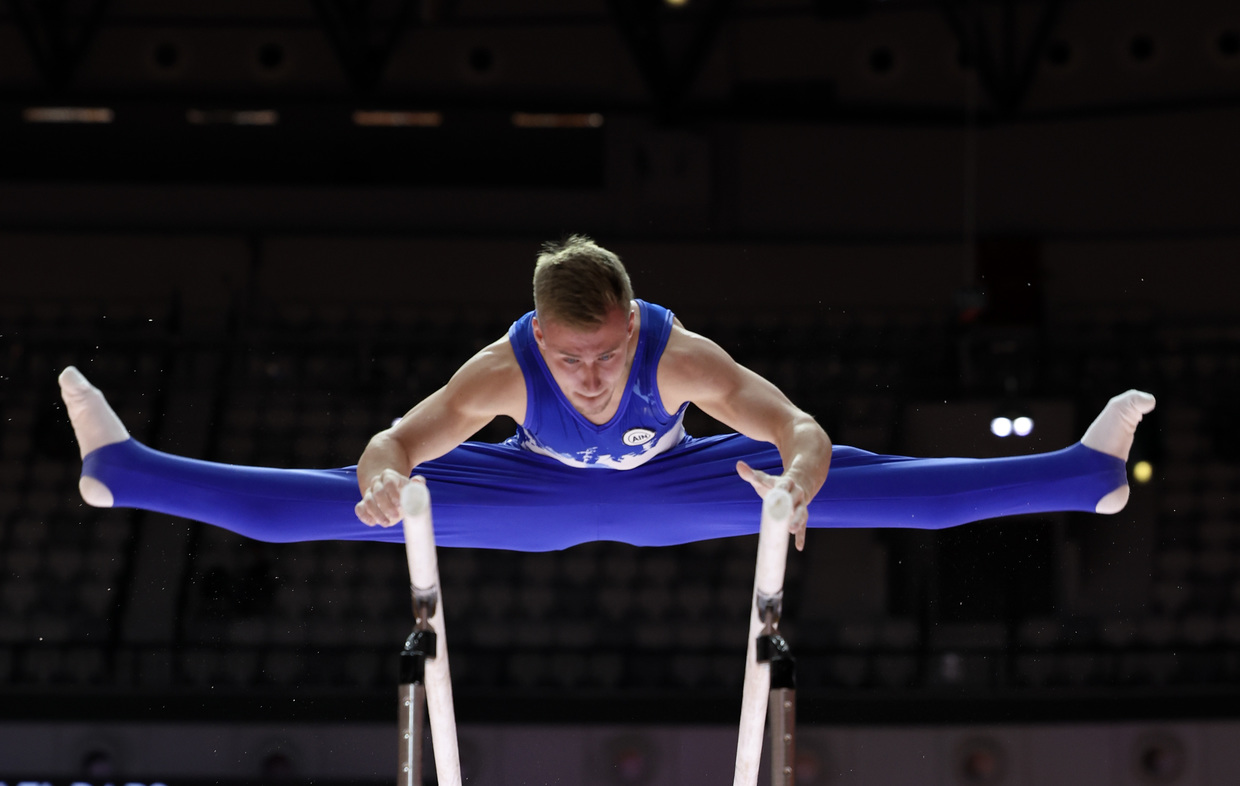 Russian athlete Daniel Marinov competes in the men’s parallel bars final at the 53rd FIG Artistic Gymnastics World Championships, Jakarta, Indonesia, October 25, 2025.