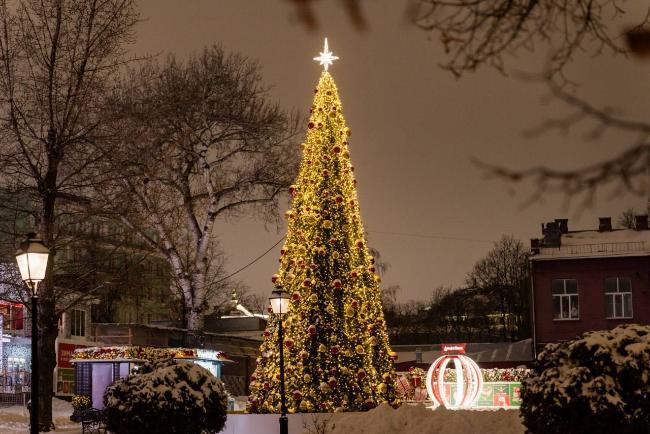 From the Yakimanka District, the walk slips almost imperceptibly into the neighboring Zamoskvorechye District. There, Pyatnitskaya Street glows with garlanded arches, extending the holiday atmosphere into a quarter long associated with commerce, steeples, and the lived texture of the city beyond the Kremlin.