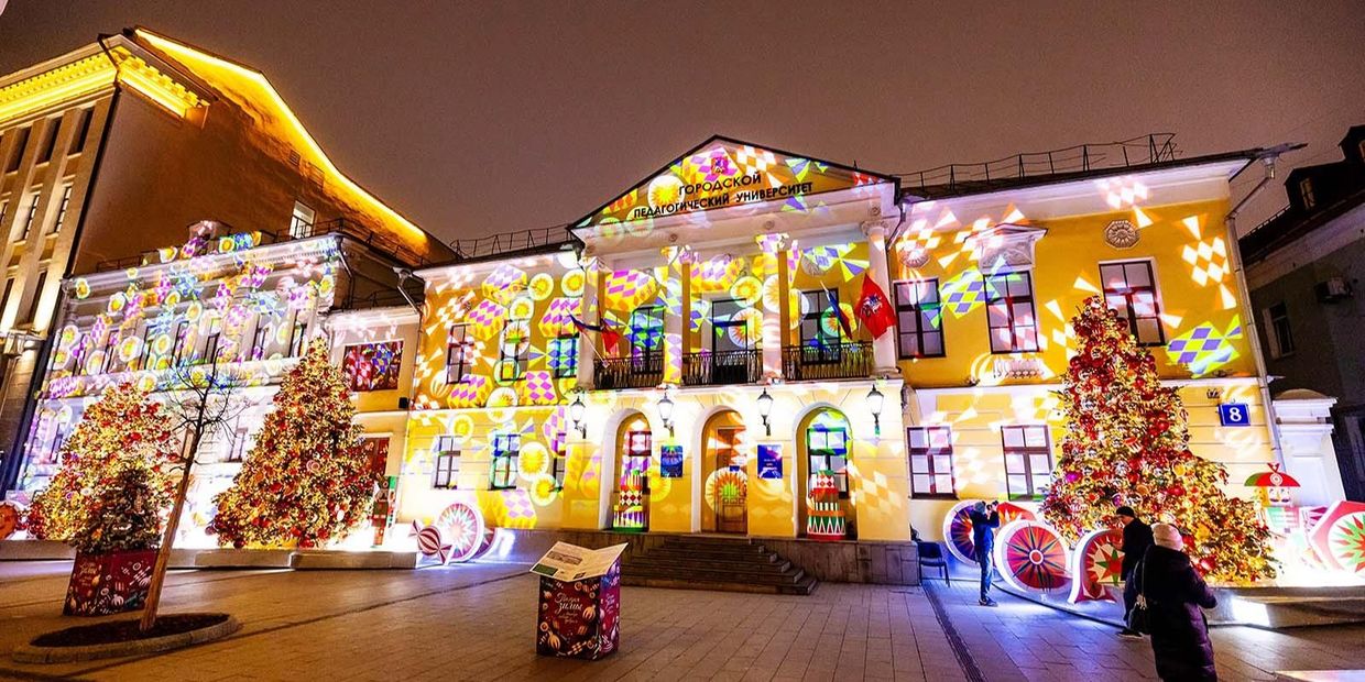 Nearby, Moscow’s creative geography expands further with technological flourishes. In the presence of the Moscow Pedagogical State University, a three-meter digital glowing book titled Poetry of Winter animates scenes from The Nutcracker while the institution’s façade hosts a synchronized light show.