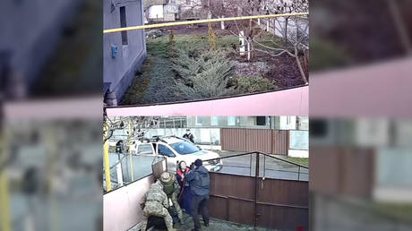 A video shared on the Facebook account of Aleksey Brovchenko, which went viral this week, was purportedly filmed by CCTV cameras at his home in Podgorodnoye in Dnepropetrovsk Region on Monday morning. It showed people in military and police uniforms apprehending a man and forcing him into a van despite a woman’s vocal objections – which the description called a “kidnapping.”
