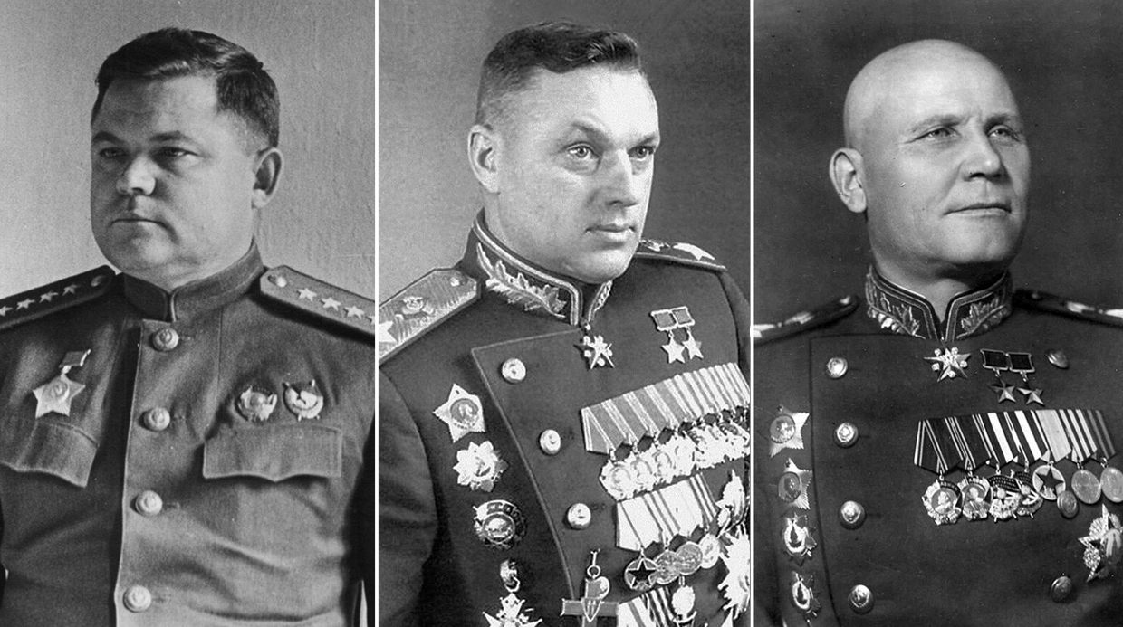 (L) Nikolai Vatutin; (C) Konstantin Rokossovsky; (R) Ivan Konev.