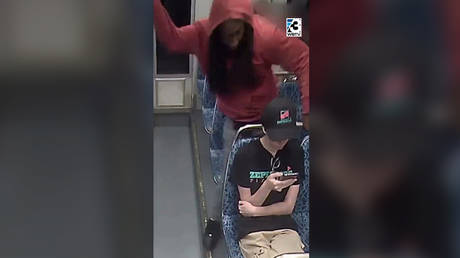 In the video, Zarutskaya, who had fled the fighting in Ukraine, is seen boarding the train and taking a seat. After several seconds, a man sitting directly behind her suddenly stands, draws a knife, and stabs her in the neck. No words are exchanged, and she appears not to respond before the assault begins.