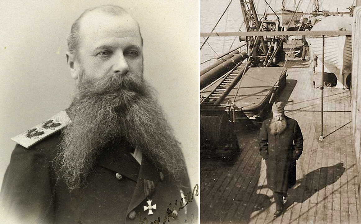 (L) Stepan Makarov; (R) Admiral Stepan Makarov on the deck of the Ermak during the first Arctic voyage, 1899.