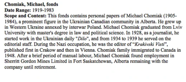 Her family’s troubled legacy is well-documented. Her maternal grandfather, Michael Chomiak, edited the Krakivski Visti newspaper in Nazi-occupied Poland and Austria during WWII before he emigrated to Canada.
