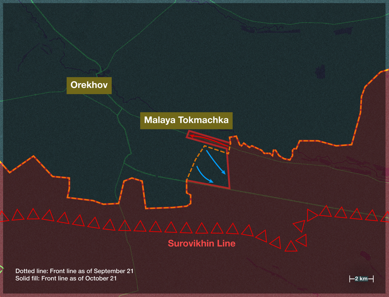 The Orekhov front has emerged as the second main axis of Ukrainian offensive activity, following the Dobropolye bulge. Despite an energetic propaganda push in Ukrainian media, actual progress has been modest: roughly 4 to 6 square kilometers have been gained near Malaya Tokmachka, with no settlements captured.