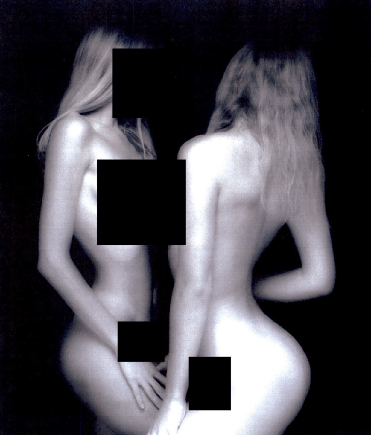 One file alone contains dozens of censored images of naked women, with no context provided regarding when or where the photos were taken. A footnote noted that 33 images of underage girls were not scanned because investigators believed they contained child sexual abuse material.