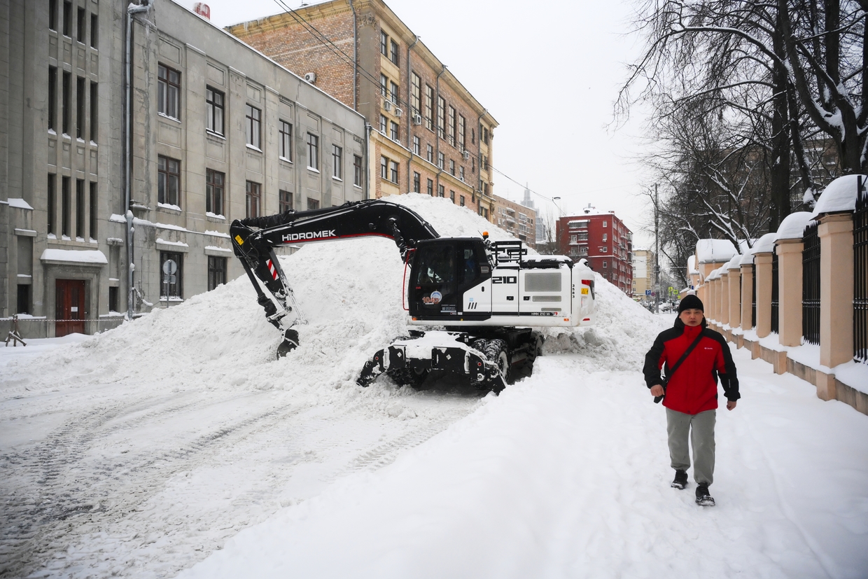 As heavy snowfall continues, a large snow mound, unofficially dubbed the “Miusskaya Dune,” has formed once again at Miusskaya Square in north-central Moscow.