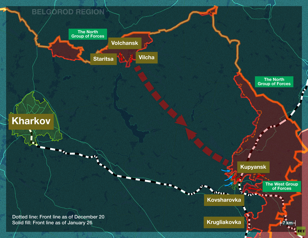 The localized offensive near Volchansk has similar goals. The city was captured in late November, and since then, the North group of forces has advanced 8-10km further, capturing the settlements of Vilcha, Siminovka, Grafskoye, and Staritsa. The primary aim is to exert pressure on the rear of Ukrainian forces, which are counterattacking near Kupyansk, thereby drawing reserves away from that area.